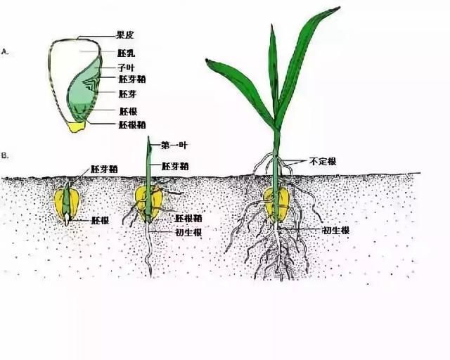 水、溫度、氧氣是種子發(fā)芽、出苗的三個(gè)最基本條件。玉米種子由兩部分組成,一部分是將來長成植株的“胎兒”, 名稱叫胚;另一部分是供“胎兒”長大的營養(yǎng)物質(zhì),名稱叫胚乳。